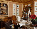 На эту базу уже добавляются специфические детали. Например, если вы делаете имитацию охотничьего домика, можно включить в интерьер комнаты отдыха ковры в виде шкур животных, панно с оленьими рогами и т.п. Для русской усадьбы будет актуальна плитка с традиционным рисунком, печь с изразцами, глиняная посуда.