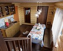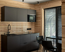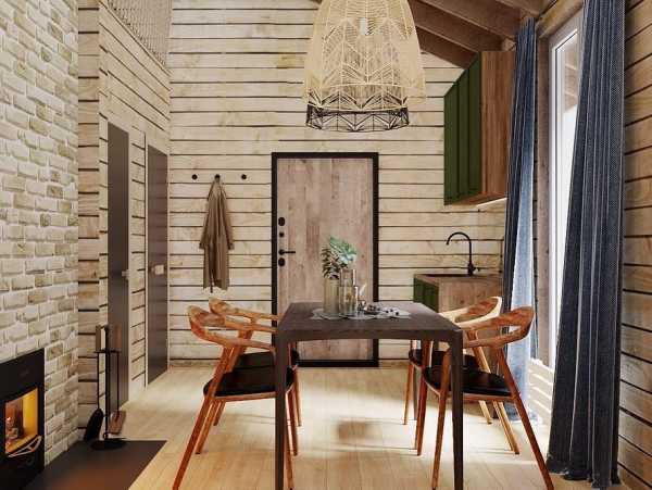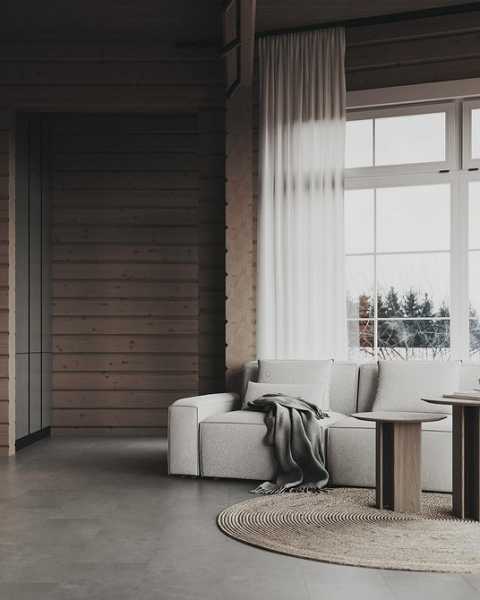 Разница появляется разве что в отделочных материалах. Стены часто оставляют деревянными, причем подчеркивая фактуру природной отделки. При этом древесину могут тонировать: например, чтобы получить более холодный оттенок. Палитру оформляют в спокойных природных оттенках, а акценты расставляют с помощью аксессуаров и небольших цветовых пятен. Мебель подбирают современную: удобный стол в обеденную группу, мягкий диван, кухня — обязательно в виде полноценного гарнитура.