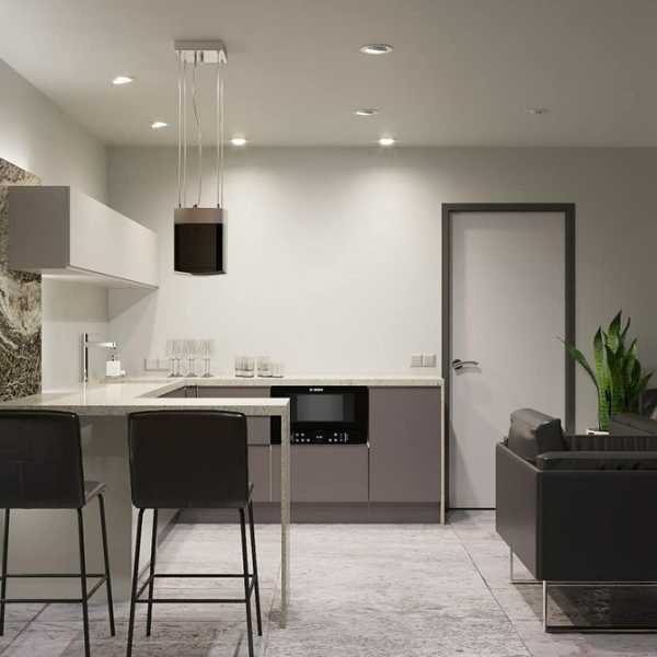 Важно, чтобы зона отдыха была оборудована всем необходимым: от многоуровневого освещения до стандартного набора техники, как мелкой вроде чайника или кофемашины, так и более крупной (духовой шкаф, посудомоечная машина, варочная панель).