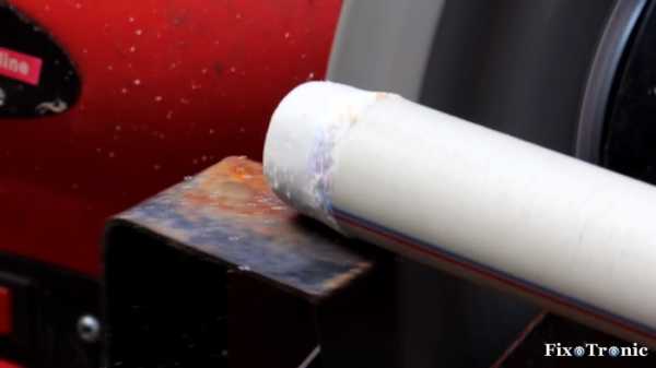На наружном конце сплющенного участка трубы по всему периметру выполняем конусную фаску путем обстругивания пластикового материала строительным ножом.