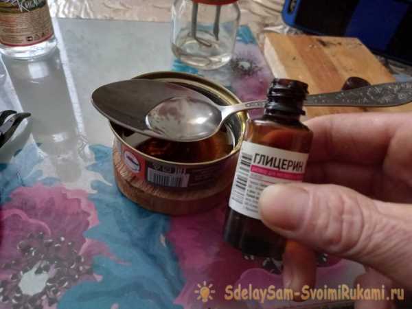 Тщательно перемешиваем. Далее добавляем глицерин. Половину столовой ложки.