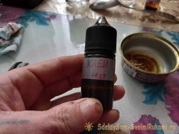 Снова перемешиваем все до однородной массы. Ждем, пока клей остынет, и переливаем его в герметичную емкость.