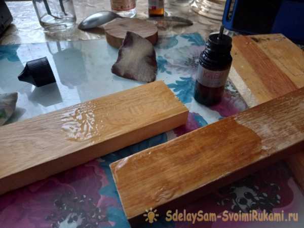 Ну и теперь можно испытать клей в деле. Возьмем два любых ненужных отрезка досок. Небольших. Зачищаем наждачной бумагой склеиваемые поверхности.