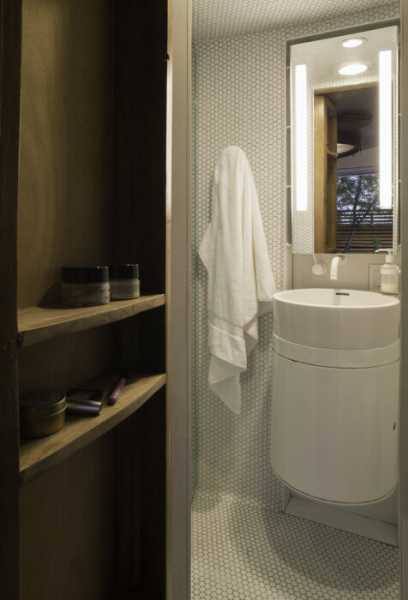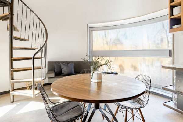 А ось над організацією житлового простору довелося поламати голову, адже невеликий діаметр (5,5 м) вежі за збереження її первісної структури вимагав ретельних розрахунків. Вихід знайшовся завдяки значній висоті зерносховища (7,8 м), яка дала змогу розділити циліндричний об’єм на два рівні, частково зберігши початкову висоту. Саме подвійна висота біля входу та наявність масштабного скління дозволили створити світле та просторе житло навіть на скромній площі, частина якої «з’їли» закруглені стіни. Враховуючи циліндричну форму вікна та скляні двері, як і більшість меблів робилися на замовлення, що значно збільшило вартість проекту. Хоча архітектор ні про що не шкодує, оскільки його мета – довести, що будь-якої об’ємної структури будь-якої форми та габаритів, створеної руками людини, може служити їй будинком, було досягнуто.