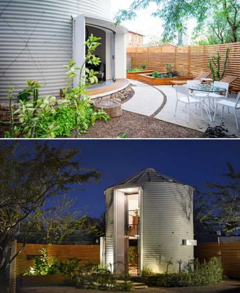 Циліндричний обсяг 1955 року випуску, який вірою і правдою служив фермеру як зерносховище (довелося доставляти з Канзасу), вирішили встановлювати в одному з крихітних міст Сполучених Штатів, у Фініксі (штат Арізона), точніше сказати в його історичному районі, що потребує повної реконструкції. Саме він став експериментальним майданчиком для архітектора, який і взявся за трансформацію. Враховуючи, що зерносховище встановили в старому районі, який у колишні часи був сільгоспугіддями, а потім і промисловим центром міста, автор проекту зробив усе, щоб адаптувати і навколишню територію під комфортне місце проживання в неординарному будинку зовсім скромних розмірів (загальний житловий простір становив 30 кв. м). У цьому допомогли зарості на покинутій ділянці, яку довелося ґрунтовно облагороджувати, щоб облаштувати зони відпочинку на свіжому повітрі та приємні краєвиди за вікнами.