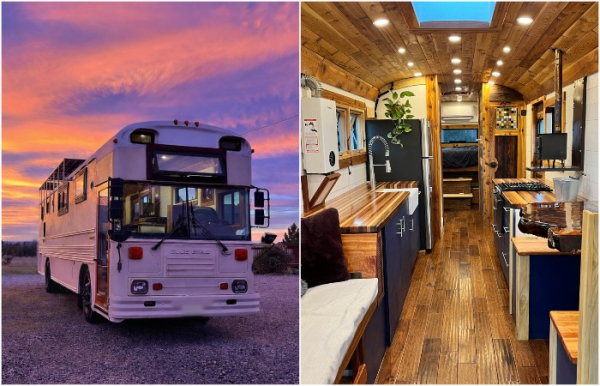 Старий шкільний автобус перетворили на автономний притулок для сучасних кочівників.