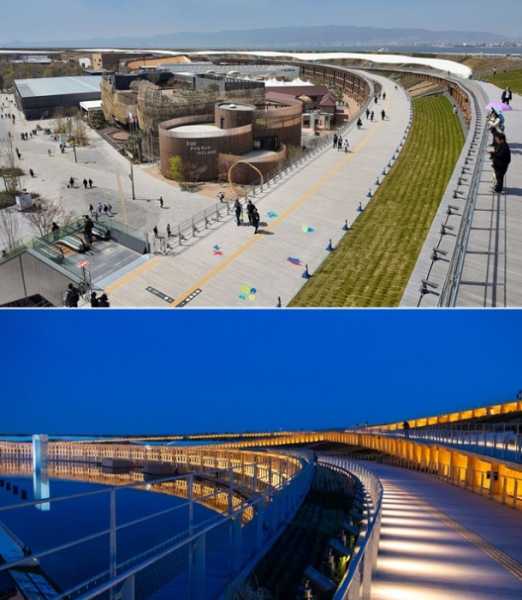 Довідка: Окружність «Великого кільця», побудованого практично повністю з дерева, становить 2 км м внутрішнім діаметром близько 615 м при ширині впорядкованого простору 30 метрів. Його корисна площа 60 тис. кв. м з висотою від 12 – 22 метри стали головним громадським місцем, куди спрямовуються потоки відвідувачів, які прибувають мінімум із 160 країн світу на один із найпопулярніших заходів на планеті – Expo 2025, виставку, яка зараз проходить в японському місті Осака (з 13 квітня по 13 жовтня). Ця споруда стала головним символом та пам'яткою, яку і намагаються зберегти як громадське місце і після закінчення Виставки.