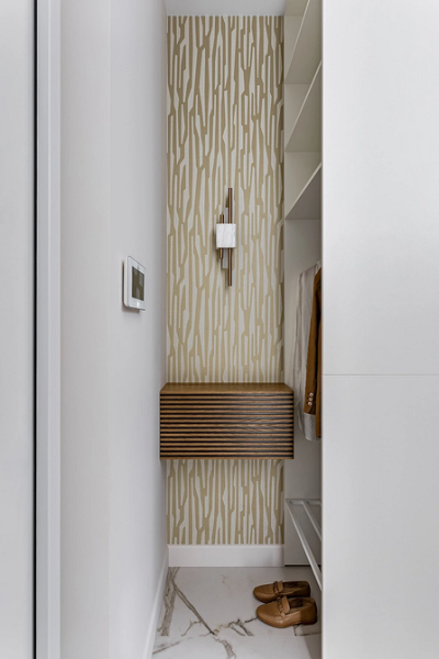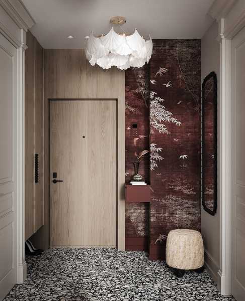 - Для передпокою та коридору підійдуть покриття, стійкі до механічних пошкоджень. Це зони активного руху, де стіни часто брудняться і піддаються тертю. Найкращі варіанти – вінілові шпалери або флізелінові, скловолокно.