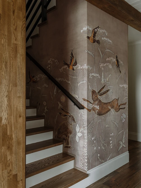 Флористичні та анімалістичні сюжети органічно поєднуються з дерев'яними меблями та іншими натуральними фактурами в інтер'єрі: від мармуру або іншого каменю до лляного текстилю та кераміки.