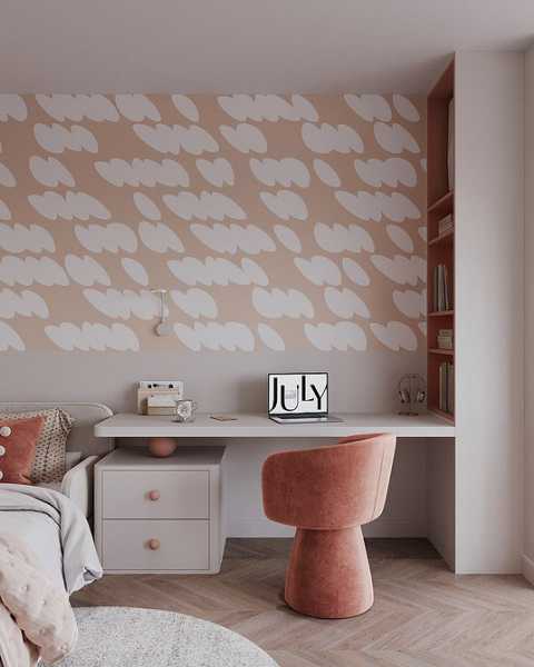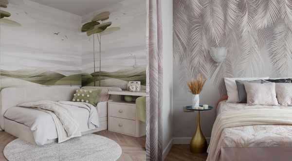 Найчастіше кольорові полотна клеять за узголів'ям ліжка, у нішах, у зоні з робочим місцем чи туалетним столиком. Комбінують з нейтральними оздобленням та меблями. А ось декор та текстиль теж можуть бути яскравими.