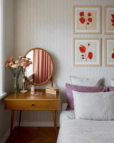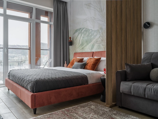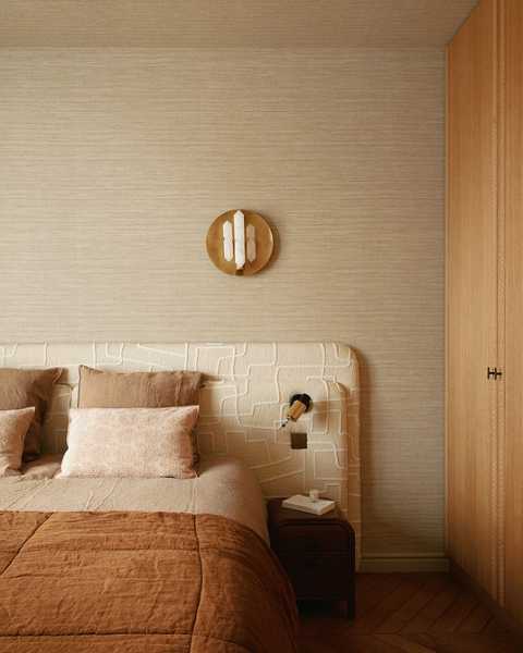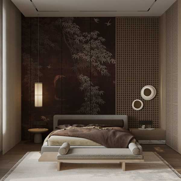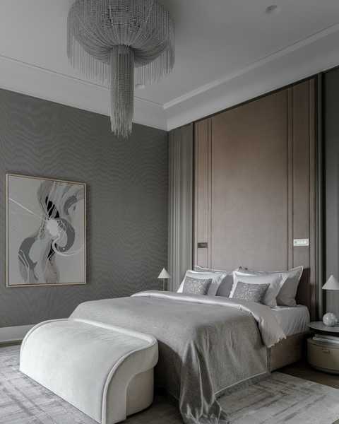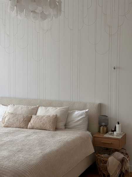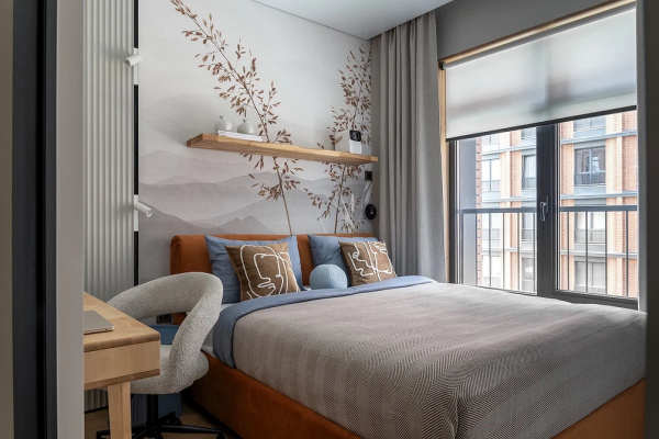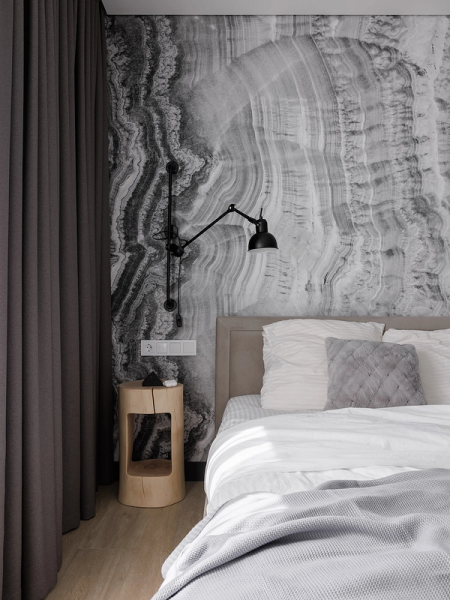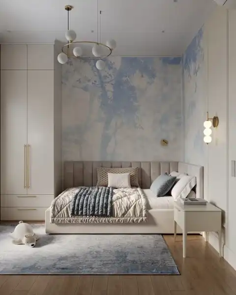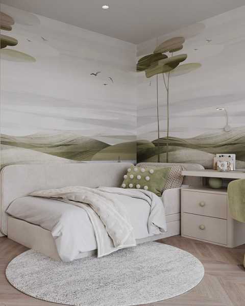 - Для спальні оптимальні дихаючі матеріали: паперові, флізелінові та текстильні полотна. Тактильність та екологічність тут важливіша, ніж зносостійкість. Часто використовують покриття під фарбування їх можна освіжити, не змінюючи обробку повністю.