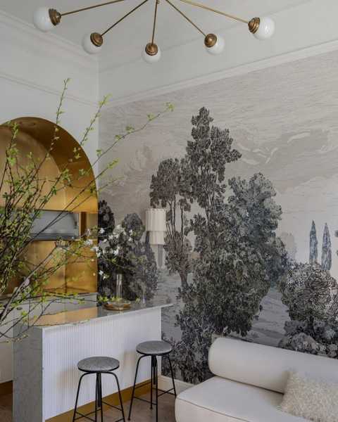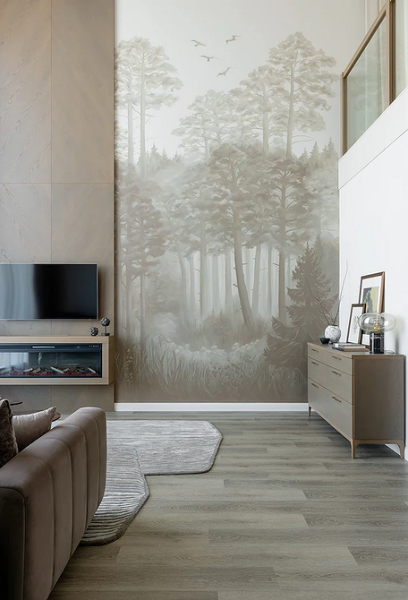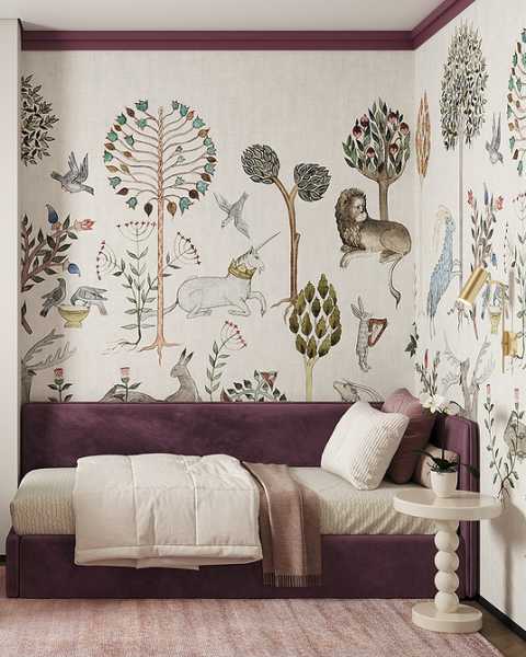 Малюнки з рослинами та тваринами – класична тема для оформлення стін, яка не втрачає актуальності. 2026-го модними будуть шпалери із зображеннями гілок, листя, птахів чи звірів у спокійних природних тонах. Якщо малюнок великий і контрастний, шпалери краще використовувати як акцент: наприклад, на одній стіні або в ніші. Якщо візерунок непомітний, стилізований, то оздоблення може бути і основний