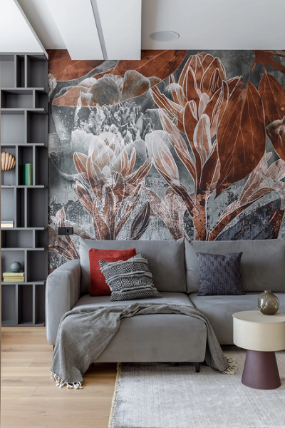 Великі зображення вже кілька років залишаються у списку трендів дизайну настінних покриттів. Масштабні малюнки — листя, хвилі, акварельні розлучення, архітектурні форми, абстрактні силуети — не лише акцентують увагу на будь-якій зоні, а й часто в принципі замінюють декор.