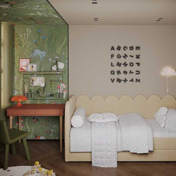 - Для дитячої необхідні не просто екологічні, а й міцні, прості у догляді матеріали. Наприклад, флізелінові шпалери із щільною структурою легко очищаються, не бояться ударів, плям та слідів творчості. Якщо діти маленькі, варто уникати рельєфних поверхонь: на них накопичується пил і їх складніше мити.