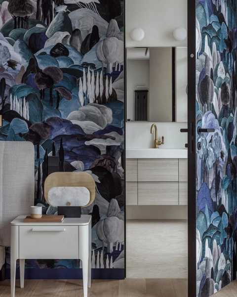 Синій, блакитний, сталевий сірий, фіолетовий та інші холодні тони зараз на піку популярності. У правильному оточенні та при хорошому освітленні вони виглядають ефектно та елегантно, але не наводять тугу і не роблять інтер'єр тьмяним. Шпалери можуть бути як однотонними, так і малюнком або сюжетним зображенням.