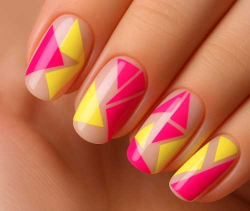 Для любителів класичної геометрії чудовим варіантом стане кольорова геометрія. Зв’яжіться з майстром, щоб дізнатися, які ідеї він може вам запропонувати, але також подумайте заздалегідь про кольорову палітру, яку хочете взяти з собою на відпочинок. Наразі популярні неонові та насичені фруктові відтінки, такі як лимонний, малиновий та фуксія. Головне пам’ятати, що фон для такого яскравого дизайну має бути максимально стриманим.