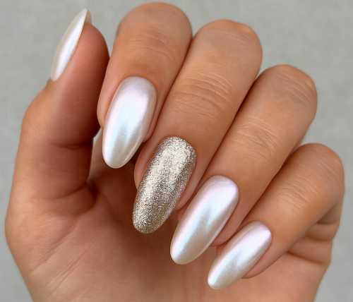 Відпустка — це час для сяяння! Тож не відмовляйте собі у блискітках. Нехай це буде один-єдиний ніготь з гліттером, омбре з переливом або перламутровий ефект у стилі «русалчиного хвоста». У поєднанні із засмагою ці покриття виглядають неймовірно вражаюче, а на сонці ще й створюють магічний блиск.